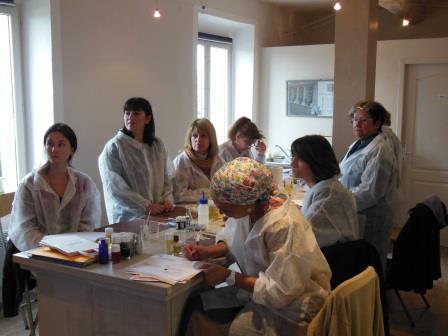 Beaucoup d’intérêt, de passion, de rires, d’implication, pour ce groupe de 8 personnes assidues et détendues, malgré le temps exécrable de ce Week-End Cosmétique en Provence.