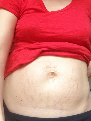Outre les vergetures, ma peau était assez flasque et fripée après l’accouchement et au fur et à mesure du traitement, elle s’est retendue. C’est assez étonnant car le ventre diminue et reprend lentement une taille normale ce qui me faisait craindre l’effet « gros ballon qui se dégonfle lentement et qui du coup se fripe ».